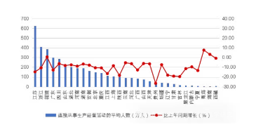 圖 4 2025 年上半年各地區(qū)直接從事生產經營活動的平均人數(shù)及其增長情況