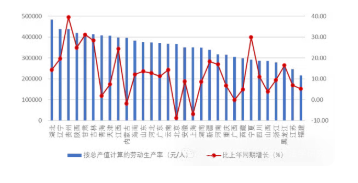 圖 5 2025 年上半年各地區(qū)建筑業(yè)勞動生產率及其增長情況